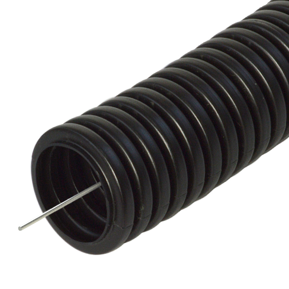 Труба гофрированная ПП безгалогенная (HF) разрезная черная dвн 9,8 мм, dнар 13,2 мм (100м/уп) Промр